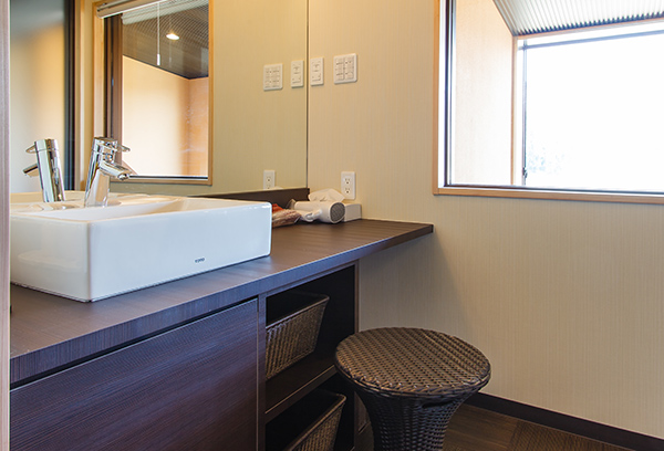 和モダンを脱衣場にも。使い勝手の良い工夫を凝らしています。